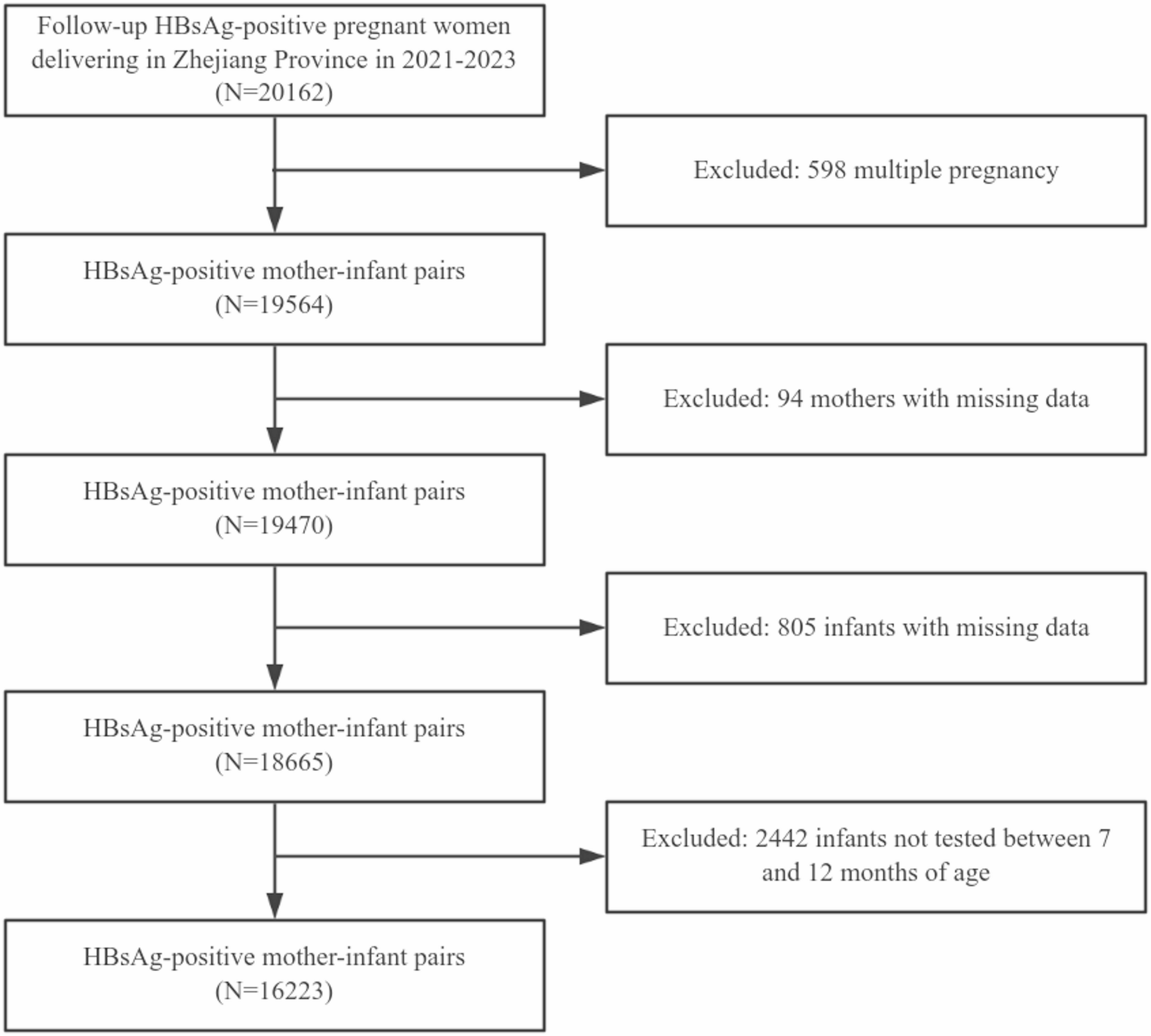 A total of 16,223 infants born to HBV-positive women who possessed complete data were ultimately enrolled during the study period, comprising 97 HBsAg-positive infants and 16,126…