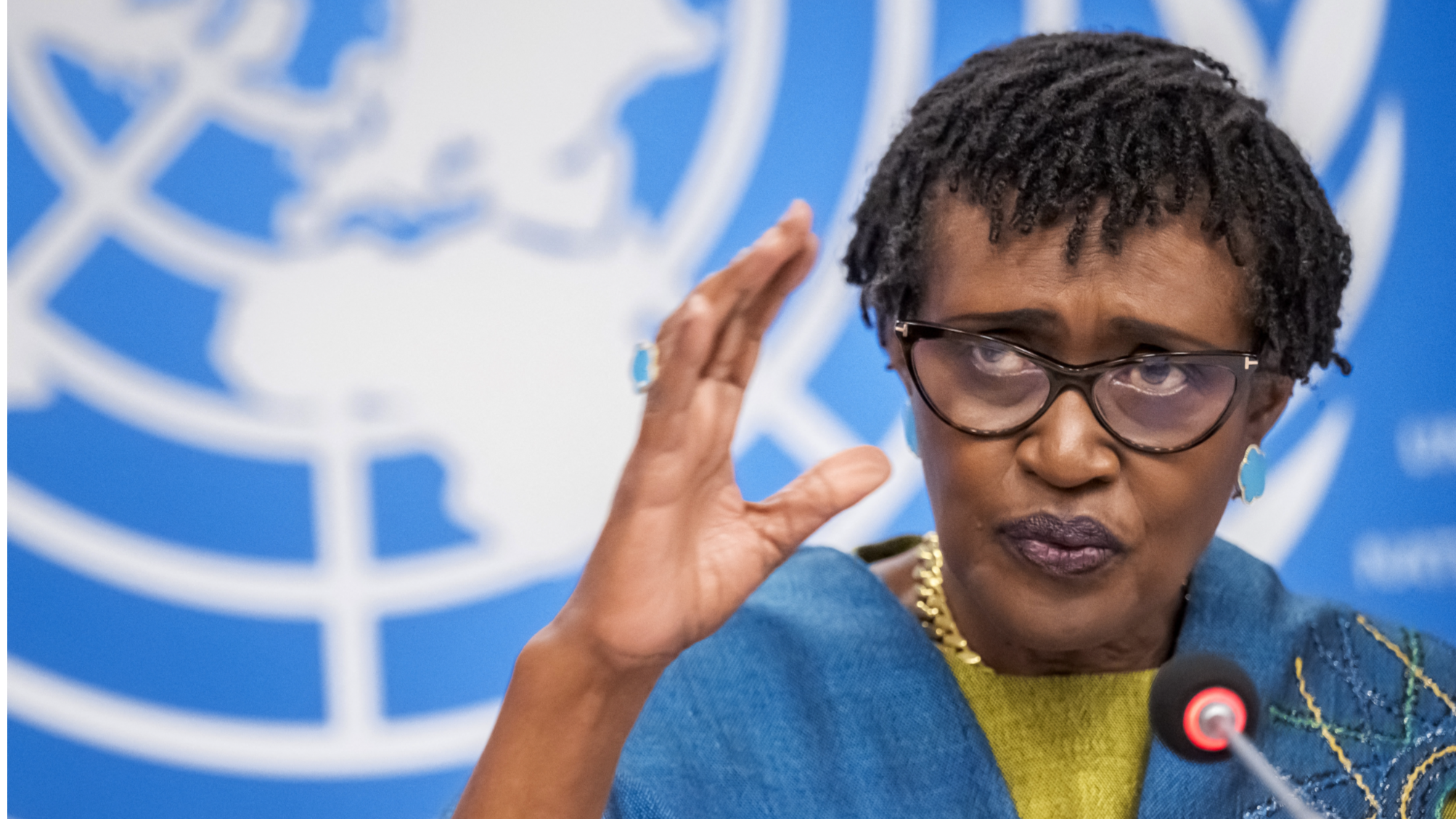 UNAIDS executive director Winnie Byanyima holds a press conference ahead of the World AIDS Day 2025 at the United Nations offices in Geneva on Nov 25, 2025. (PHOTO / AFP)