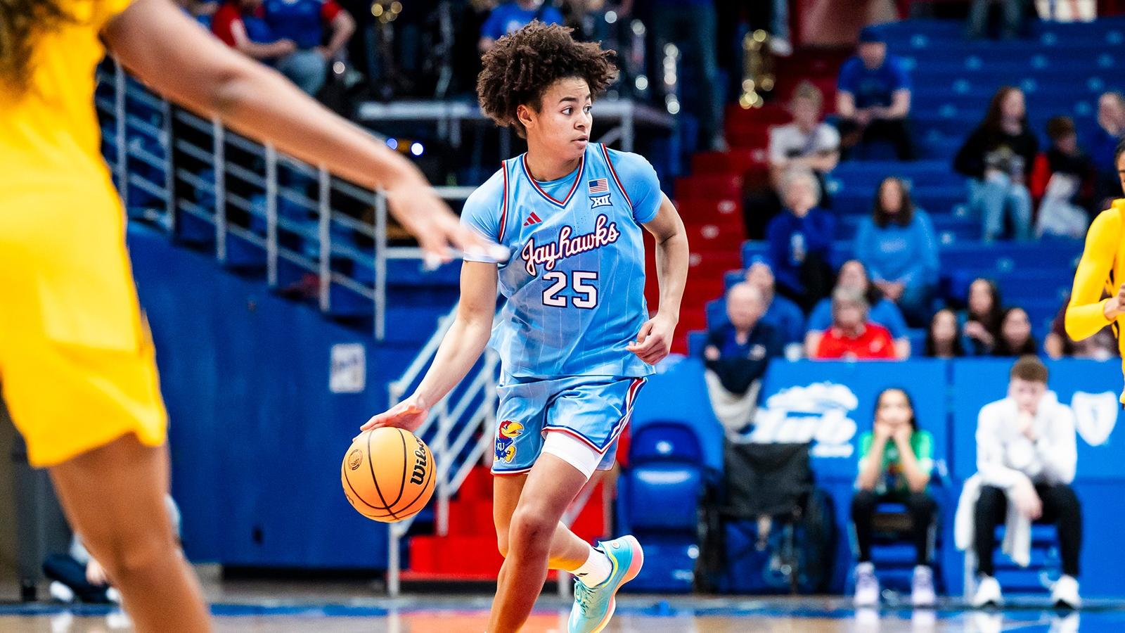 LAWRENCE, Kan. Freshman Jaliya Davis scored a team-high 21 points Thursday afternoon in her return to the court, but West Virginia used a strong fourth quarter to outlast Kansas, 79-72, in Big 12 action at Allen Fieldhouse.