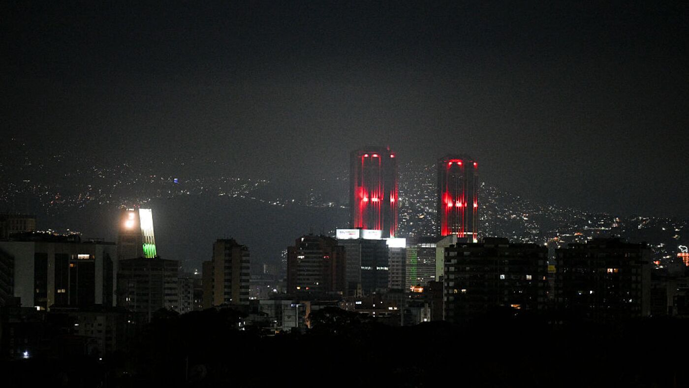 Night view of Caracas taken after a series of explosions heard on January 3, 2026.