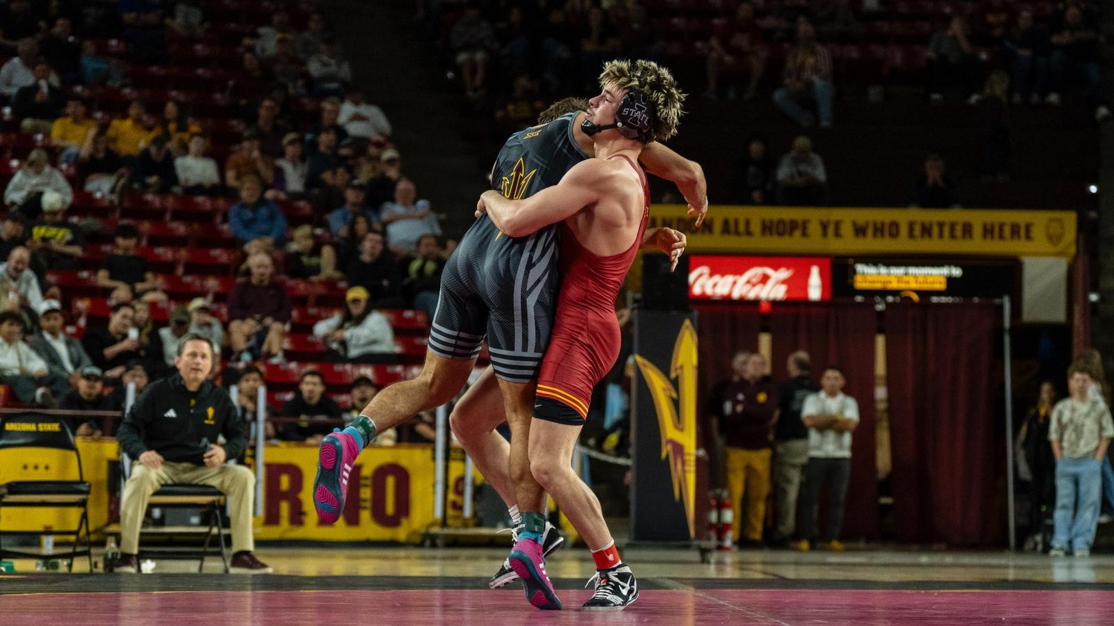 TEMPE, Arizona – No. 3 Iowa State won its Big 12 dual opener at Arizona State, 29-14, Tuesday night inside Desert Financial Arena. The Cyclones won seven of ten bouts, including five by bonus-point margin, as they improved to 8-1 in league…