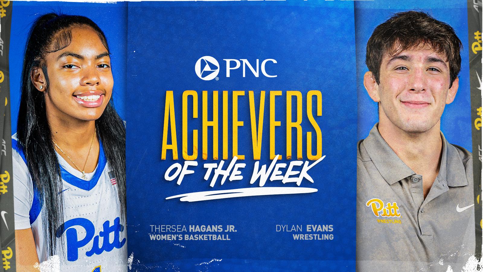 PITTSBURGH- Women’s basketball’s Theresa Hagans Jr. and wrestling’s Dylan Evans have been named Pitt’s PNC Achievers of the Week for their standout performances over the past week.