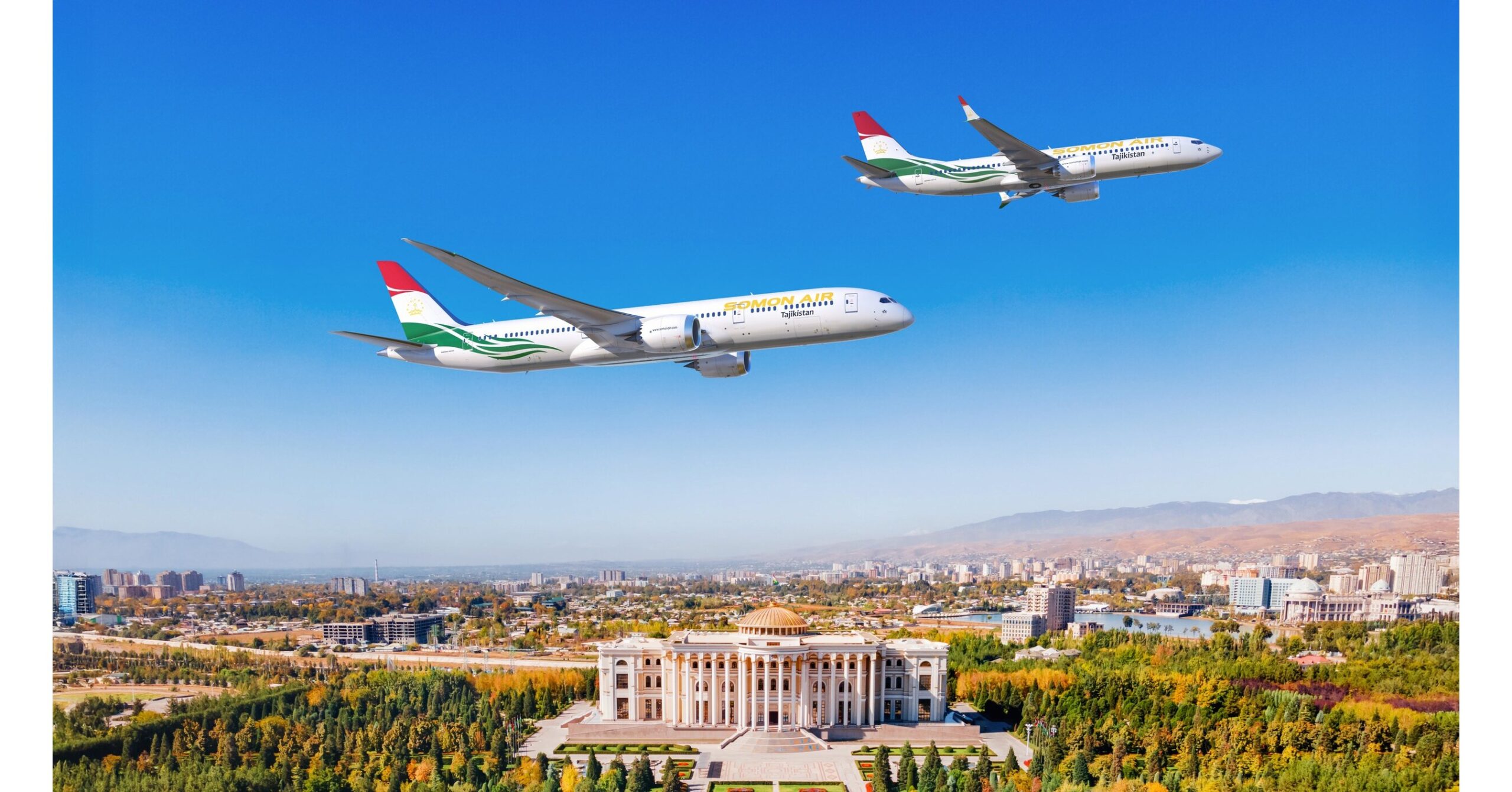 Somon Air will launch new intercontinental routes from Dushanbe, Tajikistan with the 787-9, offering superior comfort to its passengers. The 737‑8 will form the foundation of the carrier’s short and medium‑haul network. Together, these airplanes deliver a 20–25 % fuel-use improvement compared to the airplanes they replace, enabling lower per-seat and maintenance costs.