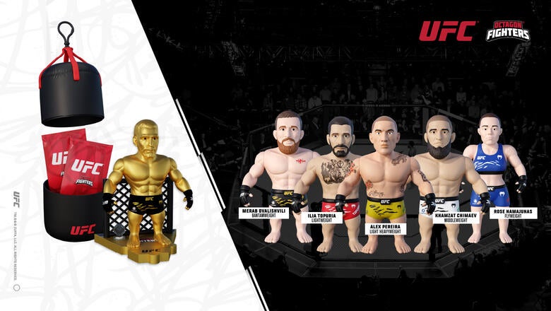 Each “blind” collectible punching bag includes a hidden UFC mini figure, complete with full articulation and signature attitude. Every capsule contains a mini fighter poster, a unique accessory, a set of stickers, and golden Octagon pieces…