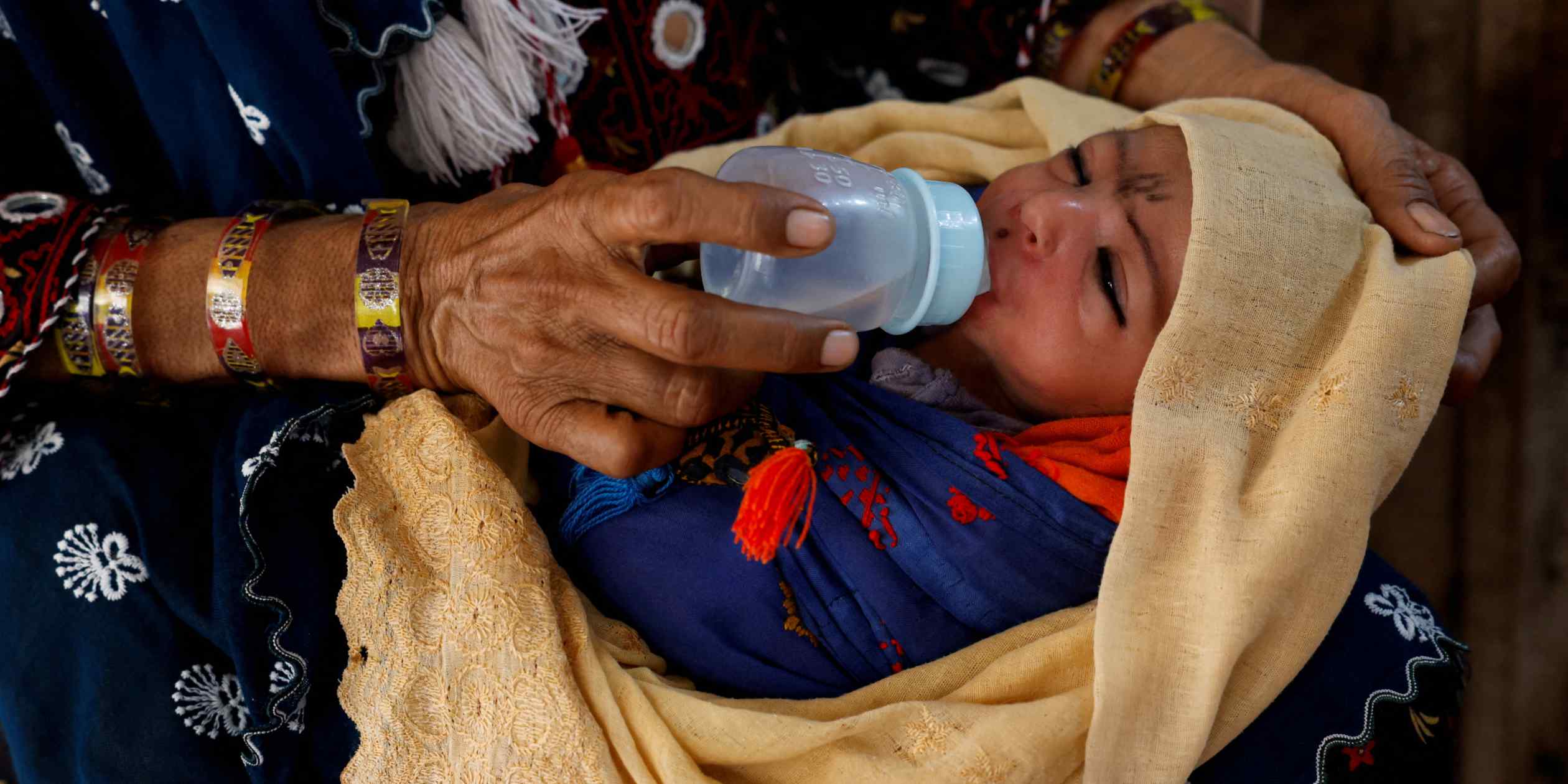 A mother gives water to her 6-day-old baby during a sweltering day in Jacobabad, Pakistan, on May 25, 2024. Some experts say that to succeed in controlling…